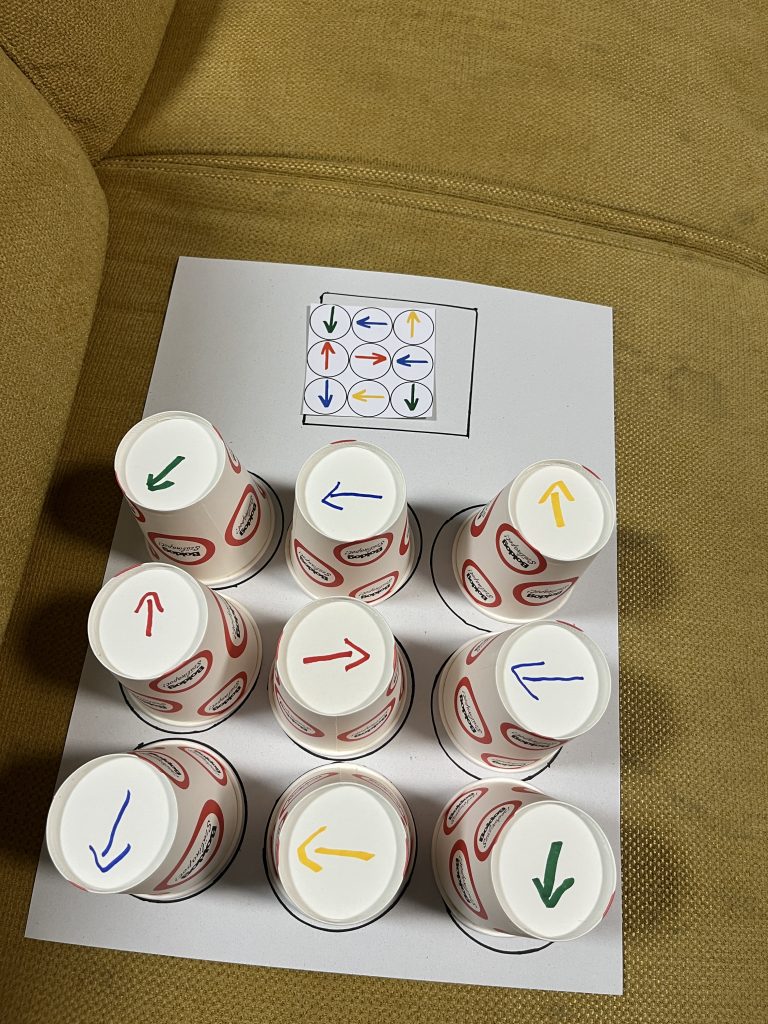 Játék Papírpoharakkal – Szabálykövetés, színek, irányok gyakorlása